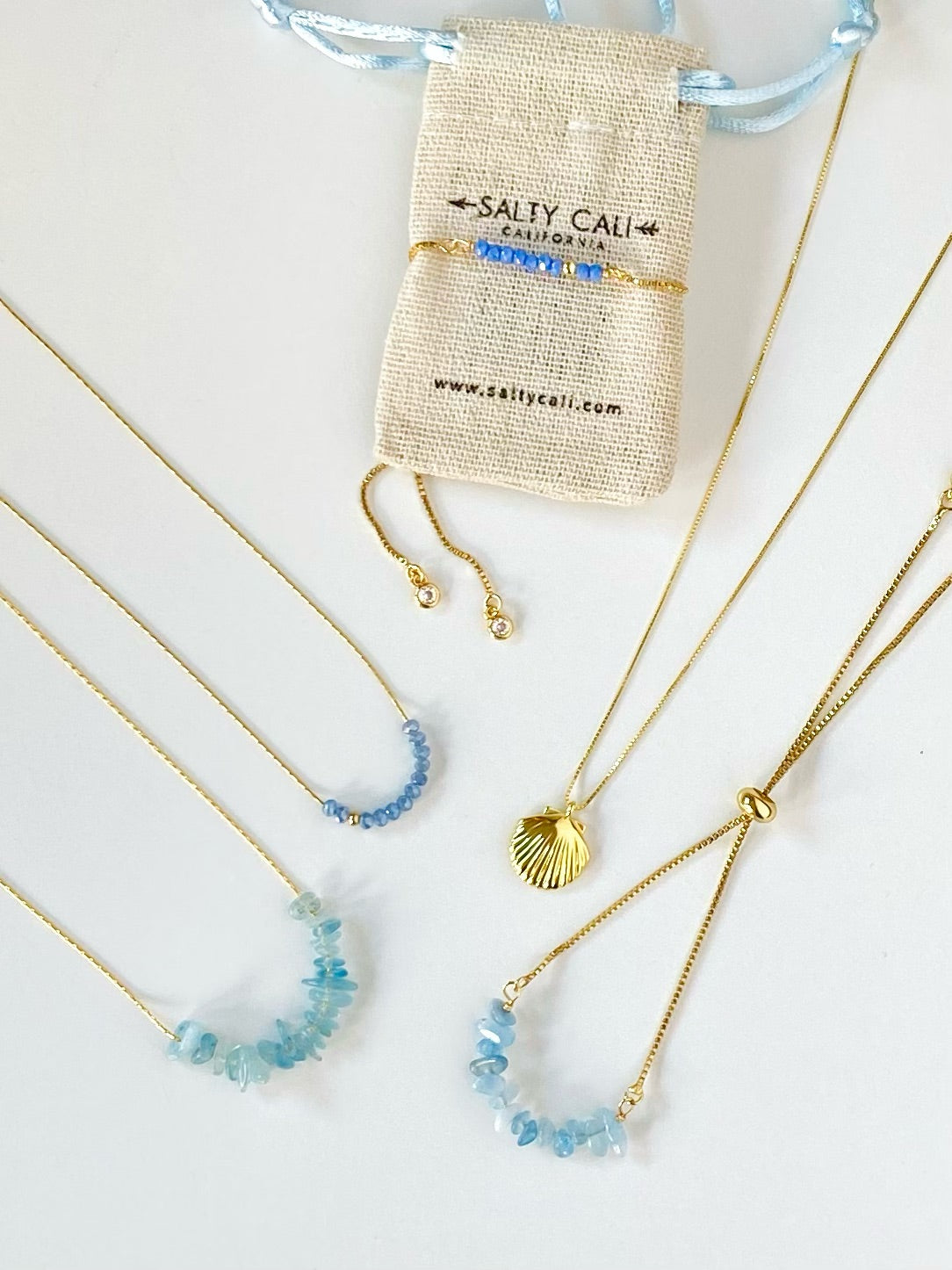 At Salty Cali, our passion for the beach is reflected in many of the necklaces we create. From subtle, sandy hues to vibrant, oceanic blues, our beach necklaces are more than just accessories—they're a lifestyle.
